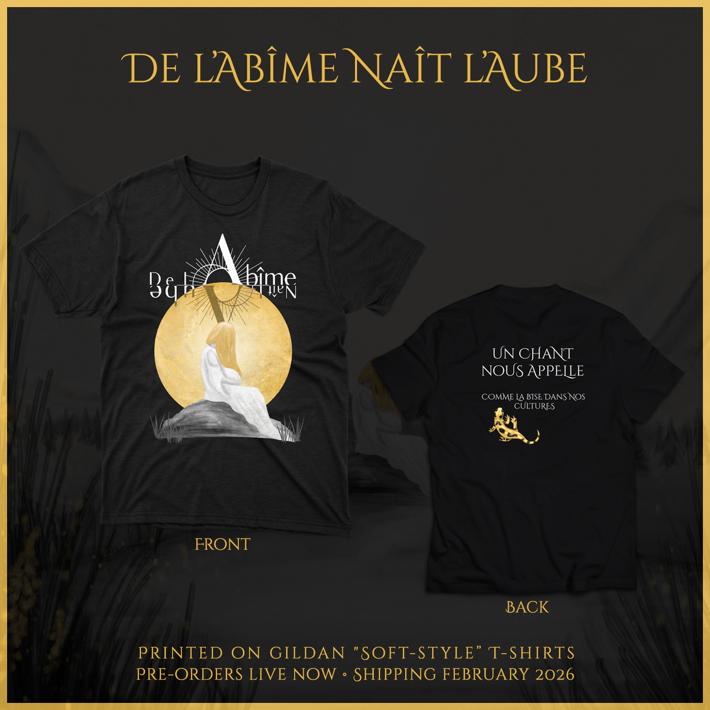 The shirts will be printed on Gildan SoftStyle (64400) by Hellsmith and orders will be shipped from Portugal.